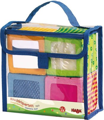 Introducing the HABA Soft Blocks for Babies 6-12 Months, the ultimate sensory toy for your little one! These vibrant soft baby blocks are designed to engage and stimulate your baby's senses, with colorful textures and unique sounds that make playtime extra fun. Made from a safe and durable cotton/polyester blend, these soft building blocks are perfect for babies aged 6-12 months. Not only are they machine washable for easy cleaning, but they also encourage fine motor skills development, stacking, and grabbing - making them the perfect STEM learning toy for your baby. With hours of endless fun ahead, these baby blocks are a great gift for little ones. The clear storage bag included keeps the blocks tidy when not in use, making it convenient for on-the-go play. Get your hands on these soft baby blocks for 6-12 months and watch your baby explore, create, and discover with this engaging and interactive toy. Order now and let the sensory play begin!