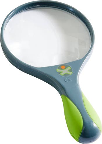 Ants, leaves, fossils... children can scrutinize the plant and animal world with this classic researcher's accessory. Designed to spark the imagination as kids observe natural objects and enhance their observational and cognitive skills. 3 different enlargement options. The sturdy handle is great for small hands and provides extra grip. The lightweight design allows kids to easily use and take with them for investigations. This sturdy, ergonomically designed magnifier is the perfect size for little explorers ages 4+. This easy to use outdoor tool and kids toy will help develop children's love of the outdoors and sense of wonder. One of the leading toy manufacturers in the world, HABA produces conscientious, quality products which are carefully constructed to meet all stringent US and European safety standards. Material: plastic. Dimensions: Ø 4", L 7 1⁄2".