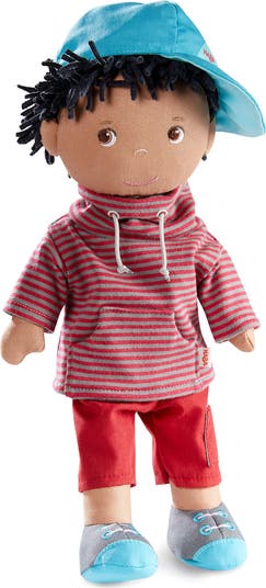HABA William 12" Soft Doll - Black Baby Boy Doll (Machine Washable) Perfect Plush Toy for 18 Months & Up with Removable Clothing and Embroidered Face, Alternate, color, Red Multi