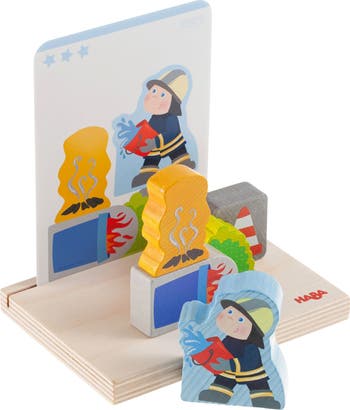 Introducing the HABA Educational Fire Brigade Stacking Toy for Toddlers 2-4, a captivating STEM wooden building block set that will ignite your child's imagination and learning skills. Crafted from high-quality beech and birch plywood, this Montessori learning toy is designed to engage young minds in hands-on play. With firemen figures and a base plate for learning through play, this educational fire brigade stacking toy is not only fun but also beneficial for your toddler's development. Watch as your little one enhances their fine motor skills, spatial awareness, and creativity while stacking and building with this set. Customizable play experience is at the core of this toy, as it includes 5 double-sided template cards for different difficulty levels. Alternatively, encourage your child to create their own unique fire brigade scene as they develop their cognitive abilities and problem-solving skills. The engaging fire department theme of this stacking toy sparks imaginative play and makes it a fantastic gift for preschool toddlers. Whether your child is stacking the blocks according to the template cards or creating their own fire rescue scenarios, this toy provides endless entertainment and educational value. Don't miss out on this opportunity to introduce your little one to the world of STEM toys and wooden building blocks. Invest in their future learning and development with the HABA Educational Fire Brigade Stacking Toy for Toddlers 2-4. Order yours today and watch as your child's skills and creativity flourish.