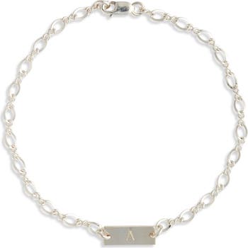 Personalize your look with a gleaming chain bracelet centered by a bar pendant that's engraved with the letter of your choice.