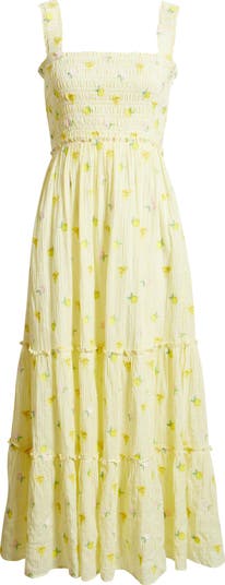 A colorful citrus print makes a fresh statement on this sleeveless maxi dress that's destined to be a warm-weather fave.