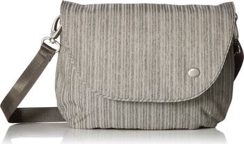 - Three pockets: exterior slip, exterior zip, and interior zip
