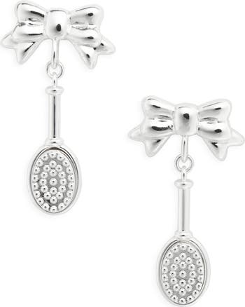 The NYC-based designer's sense of whimsy shines through these playful earrings featuring a hairbrush-inspired drop topped with a signature bow.