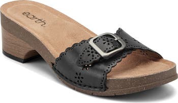 This retro-influenced sandal with a buckled vamp strap and a walkable block heel features arch-supportive cushioning for all-day comfort.