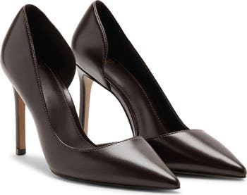 Instantly elevate your looks with this glossy half d'Orsay pump set on a lofty stiletto heel.