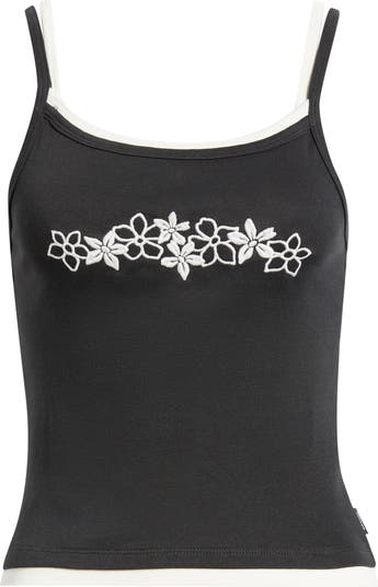 Flowery stitching charms this layered close-fitting cami cut from stretch cotton.