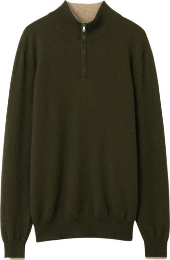A subtle burst of contrasting color within the neckline of this Half-Zip Cashmere Sweater infuses character into its timeless design. The overall appearance is enhanced by this subtle detail, along with the warmth and comfort that cashmere brings. An instant wardrobe essential.