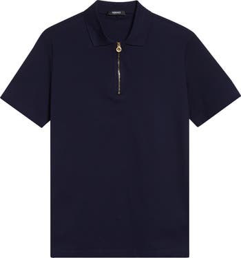 Modeled after the door of the maison's first headquarters, a gilded Medusa-head zipper pull brings baroque opulence to this trim polo cut from breathable Italian-cotton piqué.