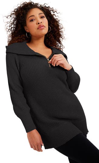 A comfortable, cozy sweatshirt in a stylish fit-and-flare silhouette with a sporty half-zip neckline and side slits at the hem.