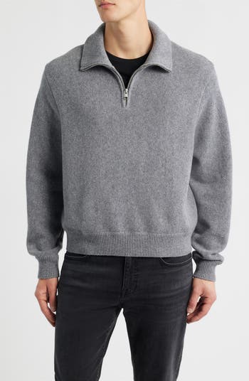 Knit in a cozy blend of wool and cotton, this half-zip sweater features rib trim for a sporty-yet-structured look that's always in style.