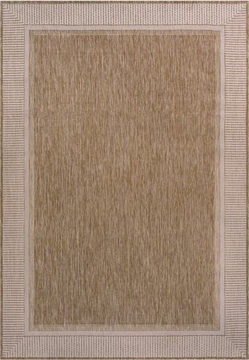 Our coastal border rug has a wide stripe around the edge with a plain center field. It's woven from durable synthetic fibers in a two-tone design. Use this easy-care, family-friendly rug on the porch or deck, or in high traffic spaces like a living room, dining room or entry.
