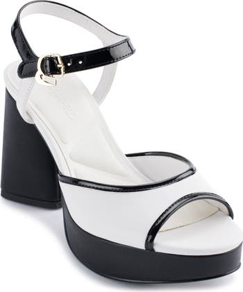 A cushioned footbed puts invisible comfort underfoot this retro-inspired sandal boosted by a lofty platform and heel.