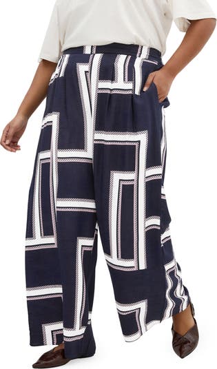 Add bold style to your outfit with these flowy wide-leg pants fashioned with a pull-on waist, inverted pleats and an eye-catching print.