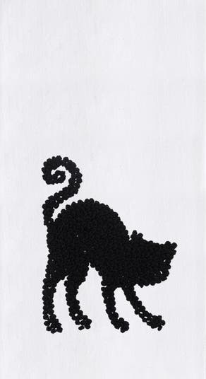 - Features an intricately embroidered black cat with French knot accents, adding a festive and stylish touch to your kitchen décor, perfect for celebrating Halloween and autumn gatherings with charm and seasonal appeal. Ideal for drying dishes, wiping hands, or accenting countertops, this dishtowel combines practicality with decorative flair, enhancing your kitchen with a festive accent while remaining functional for everyday cleaning tasks. Crafted from 100% cotton, this towel is soft, absorbent, and durable, offering long-lasting use. The embroidery provides a high-quality decorative finish, ensuring both beauty and function blend seamlessly in your kitchen space. Complements a wide range of seasonal kitchen themes and décor styles, from classic Halloween motifs to autumn harvest displays. It works beautifully as a functional towel or as an accent piece to complete festive arrangements.