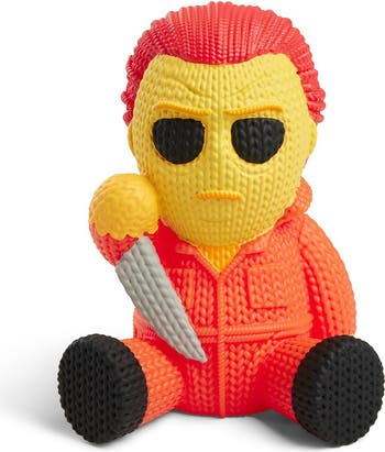 Approximately 5 inches tall and perfect for display or play Our friendly robots designed this figure to look like knit fabric at a glance, but it’s actually made of vinyl Signature vinyl tag on the figure, complete with barcode decal to resemble a sewn-in tag Pumpkin orange colored Michael Myers never looked so unique!