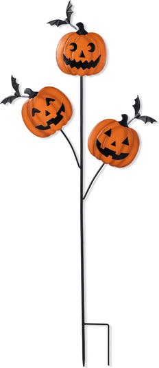 The 39.50"H Halloween Metal Triple Pumpkin with Spring Bats Yard Stake is a festive and eye-catching decoration that adds a whimsical touch to any yard or garden during the Halloween season. The stake itself is designed with a removable feature, allowing for easy installation and removal, making it a convenient choice for temporary holiday displays.