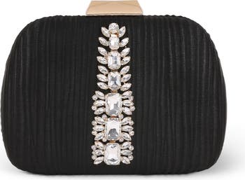 This stunning evening bag is the perfect accessory for any special occasion. Its front horizontal decorative crystal panel adds a touch of glamour, while the gold-tone hardware provides a sophisticated finish.