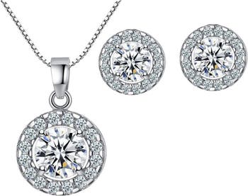 Illuminate your ensembles with our exquisite White Gold Cubic Zirconia Necklace Set. The stunning cubic zirconia stones, set in a beautiful white gold setting, add a touch of elegance to any outfit. This set includes a necklace and matching halo earrings, creating a cohesive and glamorous look