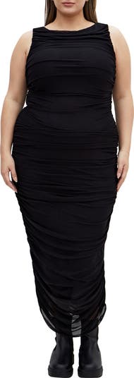 Allover ruching creates gorgeous texture and a curve-hugging fit in this sleeveless mesh dress that's the perfect 'fit for a night on the town.