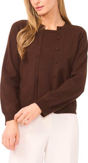 Get a seamless layered look with this wool-kissed sweater featuring a cardigan silhouette and sewn-in tank designed to look like two separate pieces with all the ease of a pullover.