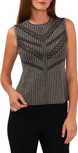 Made from a luminous ribbed knit with precisely placed panels at the hem, this sleeveless sweater is a figure-skimming layer you'll love for polished occasions.