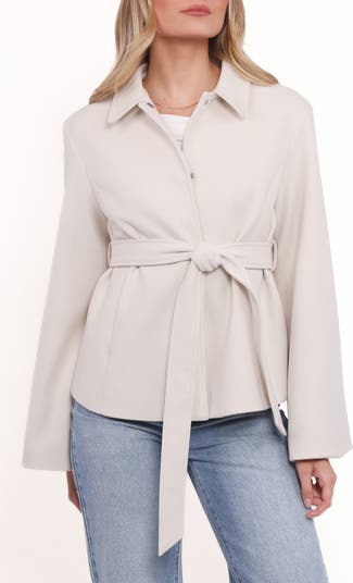 A simple sash shapes the silhouette of a snowy-shaded jacket that brings cozy polish to any look.