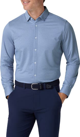 A neat gingham pattern brings easy versatility to a shirt made of stretchy, sweat-wicking fabric that resists wrinkles and odors to keep you looking and feeling fresh.