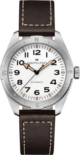 A Swiss-automatic movement provides reliability and precision on this sophisticated watch that's detailed with bold numerals and uniquely shaped hands. A Super-LumiNova® coating on the dial provides excellent legibility for easy timekeeping.