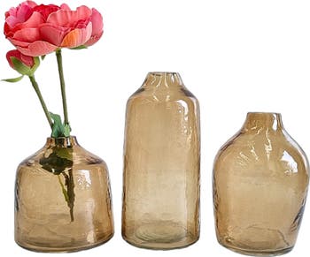 Introducing our exquisite collection of handblown hammered glass bud vases, a perfect blend of ethical craftsmanship and sustainable design. Each vase is meticulously hand-crafted from 100% recycled glass, offering a unique hand-hammered texture in three complimentary shapes. Ideal for showcasing a single bloom or a small bouquet, these bud vases bring a touch of subtle texture to any space while honoring a commitment to people and the planet.