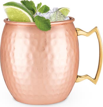 Copper is hammered into the iconic shape of a Moscow Mule mug, giving this elegant vessel a bright burnished gleam. Hang it in the kitchen or hold it in-hand, brimming with the classic concoction of vodka, ginger, lime and fresh mint.