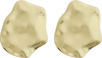 A hammered finish brings organic-inspired texture to earrings plated in 14-karat gold.