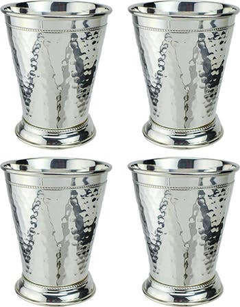 The Best of American Style: Our forever mint julep cup is handmade pure copper with silver plate. Our Mint Julep Cups are inspired from the originals cups which were made in Kentucky during the 1800s. Each Cup has the Prince of Scots Mark on the bottom to certify the quality. Prince of Scots adheres to the traditional design down to the last detail. Our cups are the same size and proportion as the originals, and even feature the same exquisite decorative beading. Fill this cup with bourbon, sugar, ice and a handful of mint for classic mint julep. Perfect for any of your favorite cocktails. Hold by the base or rim so frost will coat the cup. PREMIUM LUXURY: Our heavy, handmade Pure Copper with Pure Silver-Plate Mint Julep Cups are inspired from the originals cups which were made in Kentucky during the 1800s. Each Cup has the Prince of Scots Mark on the bottom to certify the quality. BEAUTIFUL BEAD TRIM: Prince of Scots adheres to the traditional design down to the last detail. Our cups are the same size and proportion as the originals, and even feature the same exquisite decorative beading. TRADITIONAL SOUTHERN STYLE DERBY CUP: Fill this cup with bourbon, sugar, ice and a handful of mint for classic mint julep. Perfect for any of your favorite cocktails. Hold by the base or rim so frost will coat the cup. PERFECT 12 OUNCE CUP CAPACITY: The cup of choice when serving the cocktails or ice tea. The beautiful 4 1/2 Inch tall size and design makes our cup perfect size to sit in desk with flowers or pens to show your signature style. Makes a great gift or party favor. HEIRLOOM QUALITY CUP: Set of 4. Each cup uses top quality copper with pure silver plate creating a cup to be cherished for years to come. Gift Boxed. Hand wash Only. Includes Polishing Cloth. RATED BEST MINT JULEP CUP OF 2021, 2022, & 2023