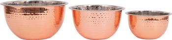 This set of stainless steel hammered bowls is great for your next party. Perfect to serve salads, chips, fruit, or candy.