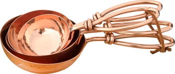 We can definitely say this set will not be found in every home. These scoops will make your kitchen shine with a rich, copper finish and decorative handles. Made from hammered stainless steel, it comes in four sizes along with a decorative leather tie.
