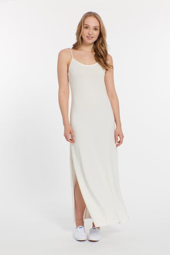 An effortless looking great travel dress for sunny destinations with adjustable spaghetti straps and side slits.