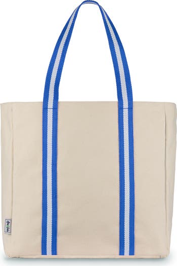 Take everything you need in style with this Hamptons canvas beach tote. This tote is made from durable canvas and features a snap closure to keep your belongings secure. The two-color webbing strap and 10" handle drop make for easy and comfortable carrying. The interior zip pocket provides additional storage, while the nylon liner ensures your items stay dry. This tote is both functional and fashionable, making it the perfect accessory for any beach day or other outing!