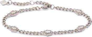 A sacred symbol of protection, the hamsa hand is believed to ward off negativity. This hamsa curb chain bracelet has five crystal-accented hamsa charms in-line on an adjustable-length curb chain bracelet. Wear is as a reminder to protect your energy, and to surround yourself with positivity and light.