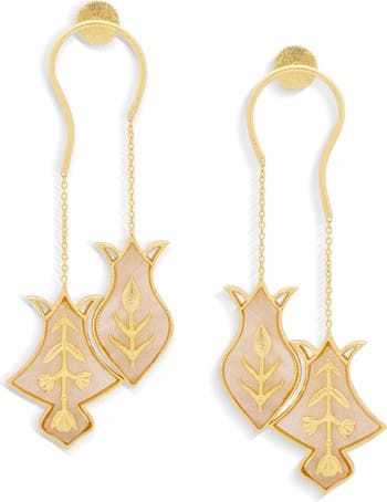 - Material: 22k gold-plated brass with mother-of-pearl resin