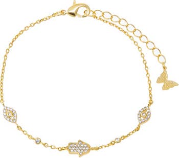 Keep it fresh with the Hamsa & Evil Eye Charm Bracelet by Adina Eden, a modern Bracelet for every vibe. Sophisticated and fun, this is available in Gold to express your unique style. Your everyday style deserves more—this piece makes even your most basic outfit feel styled, smart, and effortlessly cool. Elevate this with selections from the Cuffs & Bangles collection to complete your look with ease and style. No matter the season that instantly becomes part of your routine.