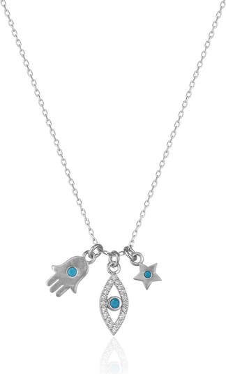 Hamsa Evil Eye Star Turquoise Sterling Silver Necklace
