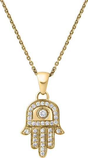 Hamsa Hand 0.3 Ct 14K Gold Diamond Pendant