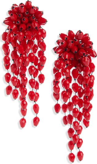 An explosion of of dimension and color makes these beaded drop earrings a playfully bold choice.