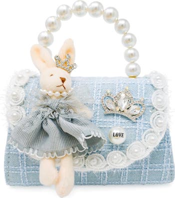 The Bunny Bloom handbag adds a touch of whimsy and sweetness to every outfit with its plush bunny friend. Available in Powder Blue and Rose Milk, each bag is decorated with pearl trims, a sparkling crown accent, and a playful pearl handle. The soft flap design keeps treasures secure, while the bunny detail makes it extra special for dress-up days and gifting. Complete with a detachable strap, it’s a whimsical accessory that blends cuddly fun with timeless sparkle.