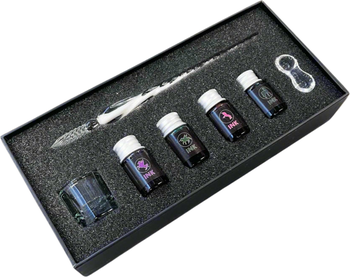 Immerse yourself in the timeless elegance of writing with our exquisite Hand-Blown Glass Dip Pen Set. Each pen is meticulously hand-blown from high-quality glass, resulting in a unique and beautiful writing instrument. The carefully crafted design offers a comfortable grip for both left-handed and right-handed persons, ensuring a delightful writing or calligraphy experience for everyone. The lightweight nature of the glass pen allows for smooth, effortless strokes, making it ideal for calligraphy, journaling, sketching, or adding a special touch to your correspondence. This set includes everything you need to begin your artistic journey: one elegant glass pen (19cm), four vibrant inks (5ml each) in green, black, orange, and yellow, a stylish pen holder, and a convenient cleaning cup. Cleaning is simple just dip the pen in water and dry it with a paper towel. Elevate your writing experience with this stunning glass dip pen set. Features: Beautifully hand-blown glass pen (19cm). Comfortable grip for both left-handed and right-handed users. Lightweight for smooth and effortless writing. Includes 4 vibrant inks (5ml each): green, black, orange, yellow. Comes with a stylish pen holder and a cleaning cup. Easy to clean with water and a paper towel. Perfect for calligraphy, journaling, sketching, and unique writing. Makes a thoughtful and elegant gift. Keywords: glass dip pen set, hand-blown glass pen, calligraphy pen set, elegant writing pen, left-handed pen, right-handed pen, ink set, green ink, black ink, orange ink, yellow ink, pen holder, cleaning cup, 19cm pen, art pen, journaling pen, gift for writers