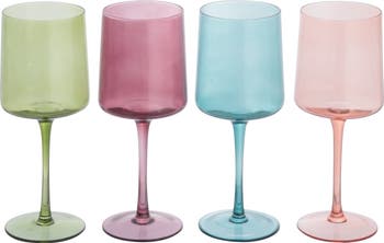 These wine glasses bring both style and class to any gathering. The hand-blown design provides an artisan feel and the shape offers a sophisticated silhouette. In a beautiful assortment of colors, these stemmed glasses offer something for everyone. Whether enjoying a refreshing cocktail with friends, or a favorite wine with family, these pieces will delight. Hand wash only; 14 ounces.