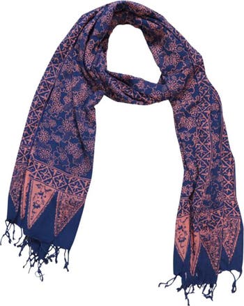 This is a hand-dyed and hand-stamped batik scarf, handmade by artisans. This fabric is handmade by artisans in Java using centuries old wax & dye batik technique. This fabric is made from the lightweight bandana fabric. This scarf is made from white cotton fabric that is then hand-stamped and hand-dyed using 700 years old batik wax and dye technique. The batik fabric is also then sun baked. You should expect some variation of the color. This pattern is called Manggis or Mangosteen Size:71"x21" Made with 100% cotton fabric Machine washable in cold and air dry. Wash batik separate from other garments. See our video of batik making process from white cotton fabric to the final product below