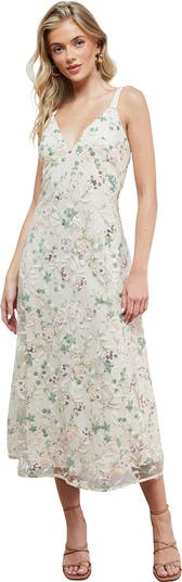 This enchanting midi dress from Oasis showcases exquisite craftsmanship with its hand embellished detailing that catches the light with every movement. The flowing silhouette falls gracefully to mid-calf, creating an effortlessly feminine look perfect for special occasions. For cooler evening events, layer with a lightweight pashmina or fitted cropped jacket. Complete your ensemble with delicate drop earrings and a small clutch bag to maintain the dress's refined aesthetic.