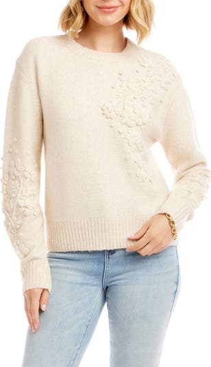 Karen Kane Hand Embroidered Sweater, Alternate, color, Light Oatmeal