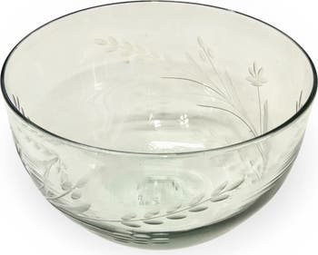 Handblown from recycled glass and hand-etched with a floral design, these lovely bowl will bring charm and character to the table. KINDLY NOTE: Due to the handmade nature of this item, there will be variations in design and size, as well as slight imperfections, possibly in the form of air bubbles, black specks, pontil and or hand tooling marks, glass or color pattern irregularities; this imperfections are an attribute of handmade craftsmanship and one of the many reasons we love it. - Size: Approx. 7.5" Dia x 3.75"H - Sold individually - 100% Recycled Glass - Food safe - Size & shape will vary (approximately 1/2") from piece to piece.